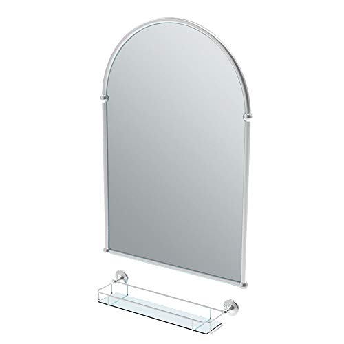 Väggspegel, Retro välvd badrumsspegel i mässing, HD-linser, Anti-dimma rakspegel, Dekorativ spegel 675mmx480mm (26.57inx18.89in), med hylla, Silver/Guld