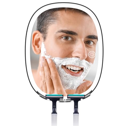 FASCINATE Rakspegel anti-dimma duschspegel, 3 justerbara ljusfärger sminkspegel med rakbladshållare Fogless-duschspegel