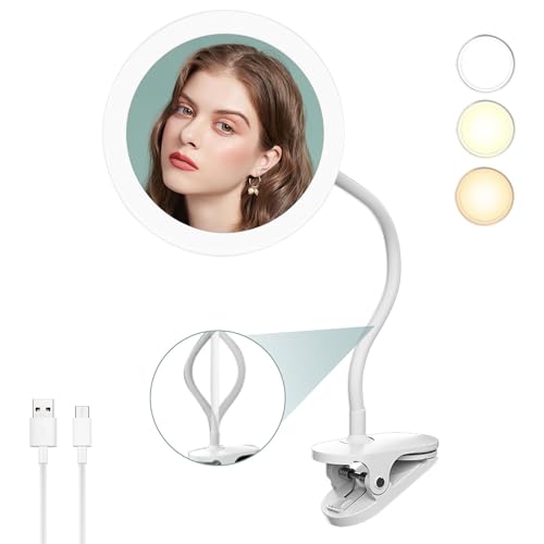 TUSHENGTU Rakspegel, 6,5 tum (16,5 cm), med klämma och svanhals, belysning och förstoring 10 ggr, justerbar duschspegel, USB-uppladdningsbar (vit, 10 ggr)