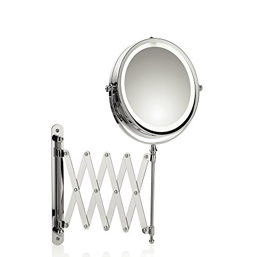 kela Sminkspegel med belysning och förstoring VALERIA 14 cm, 1/5 fack, väggmontering, utdragbar sminkspegel, förkromad, rakspegel