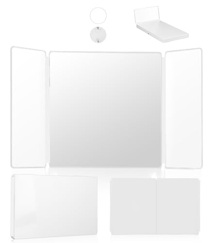 Xespis 360 graders spegel, 3-vägs sminkspegel, 3-sidig spegel med krokar, höjdjusterbar, bärbar spegel, för smink, styling, rakspegel