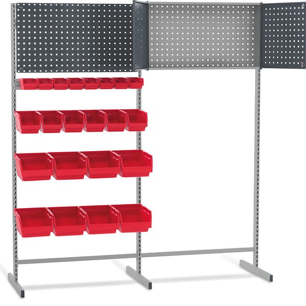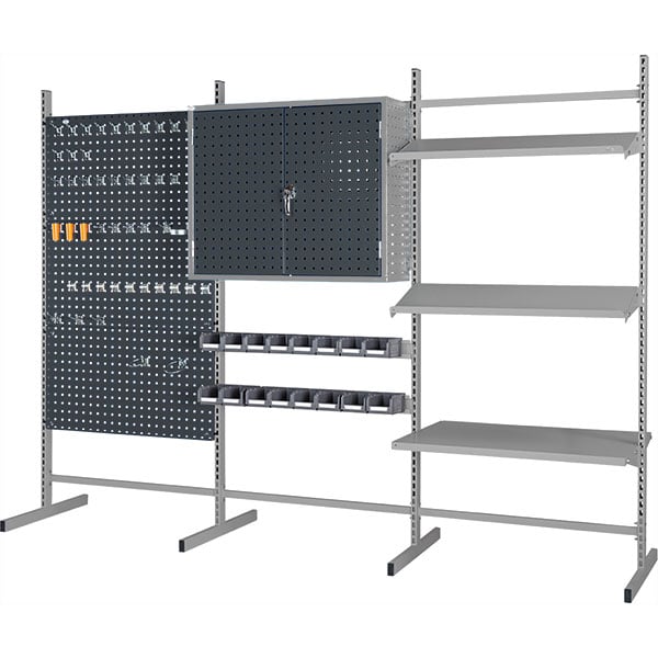 MaxiStore med 4 verktygsplåtar. Max 120 kg/plåt, RAL 7004/7024 c-c mått 34 mm