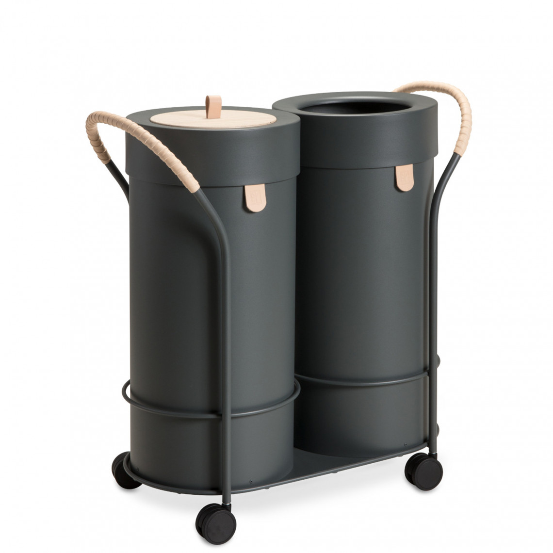 Papperskorg Bin There - Large, Färg Antracit RAL 7043, Utförande Dubbel inkl. vagn (utan lock)