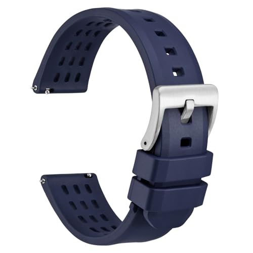 WOCCI Rally Klockarmband, FKM Gummi (Icke-Silikon), Ersättningsarmband för Män, Snabbfrigöring, Rostfritt Stålspänne, Valfri Bredd 20 mm 22 mm, 20mm, Gummi