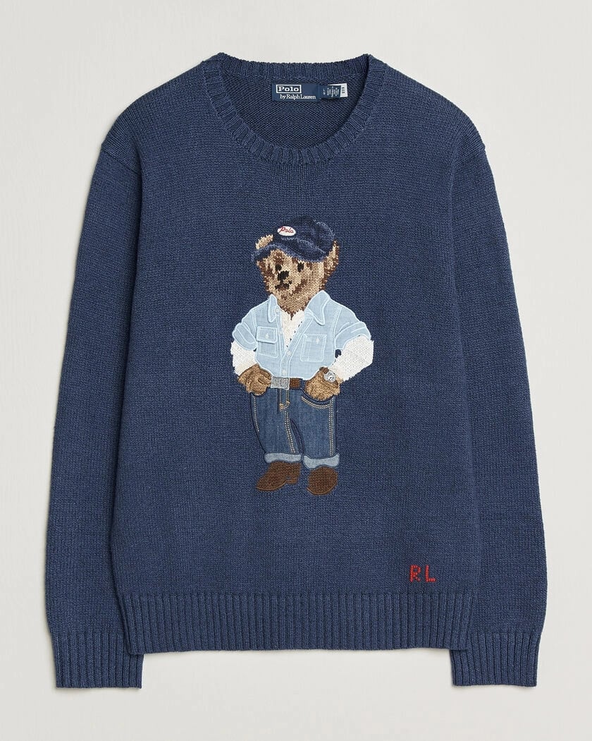 Polo Ralph Lauren Cotton Linen Bear Sweater Light Navy