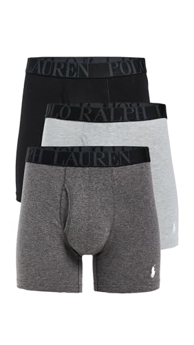 POLO RALPH LAUREN Men's Stretch Classic Fit Boxer Briefs, Trunks & Long Leg Available, 3-Pack, Andover Heather/Charcoal Heather/Black-3 Pack, Large