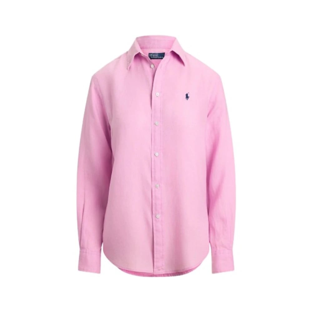 Polo Ralph Lauren, Blusar & Skjortor , Dam, L, Linne, Rak Linneskjorta med Rak Passform