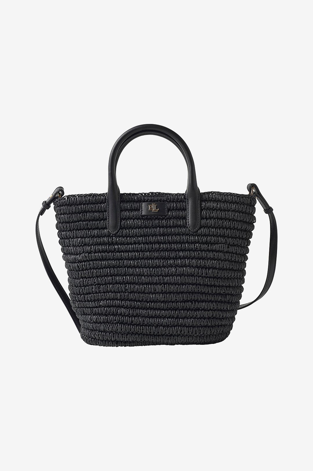 Lauren Ralph Lauren Woven Straw Medium Brie Tote Bag Svart
