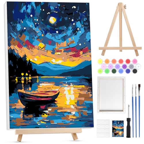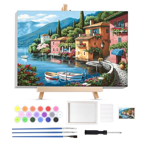 Lxmsja Vuxen barn nummermålning med ram, med trästaffli, landskapsmålning efter nummer för vuxna, konstnummer med borstar, kreativ fritid manuell aktivitet vuxna, 20 x 30 cm