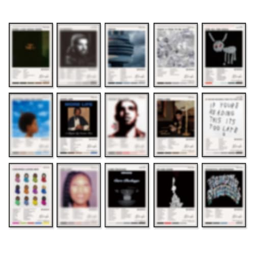 Drake-affisch (15 st 20 x 30 cm) albumomslag affischer papperstryck utan ram, musikaffischer väggkonst collage kit för rumsdekor