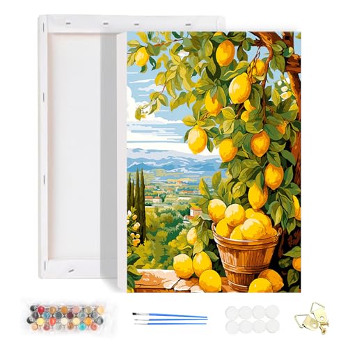 HEIBAGO Vuxen nummermålning med ram för nybörjare, fruktmålningssatser efter siffror för vuxna, gör-det-själv oljemålning efter siffror kit för heminredning, 20 x 30 cm