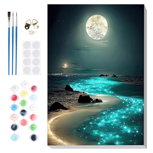 Lxmsja Landskap måla efter siffror för vuxna nybörjare med ram, kustmålning efter siffror för vuxna på duk, gör-det-själv akrylmålningssats konst och hantverk gåvor för heminredning, 20 x 30 cm