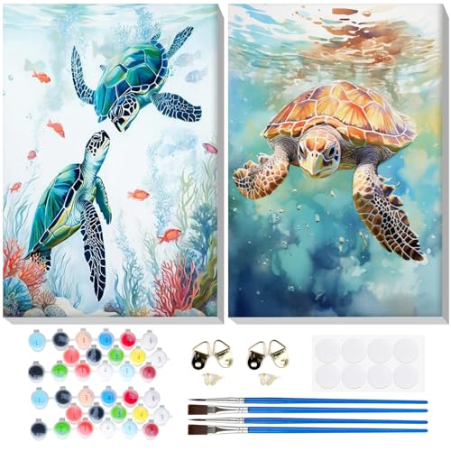 Lxmsja 2-pack måla efter siffror siffra för vuxna och barn med ram, havssköldpadda vuxen 20 x 30 cm