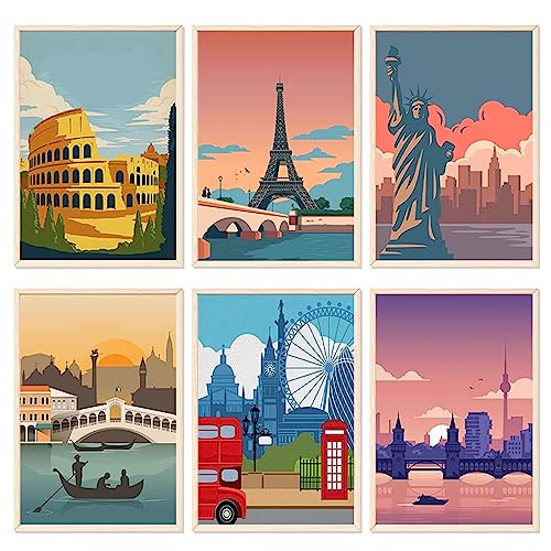 YALKIN Måla efter siffror för vuxna nybörjare, måla efter nummer kit på duk, utan ram gör-det-själv färg oljemålning akrylfärger, hem väggdekor? 6-pack 20 x 30 cm?