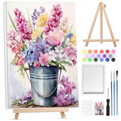 Lxmsja Måla efter siffror vuxna med ram, blomma måla efter nummer kit nybörjare med trästativ, vuxna kreativa hobbyer presentidéer för kvinnor heminredning - 20 x 30 cm