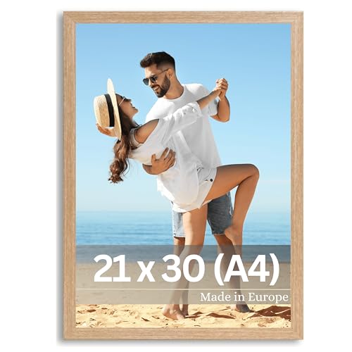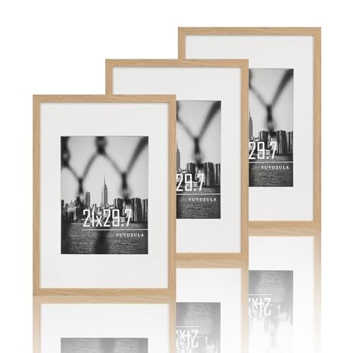VUVUZULA bildram A4 21 x 30 cm fotoram träram ek ram set om 3 DIN A4 med passepartout certifikat natur