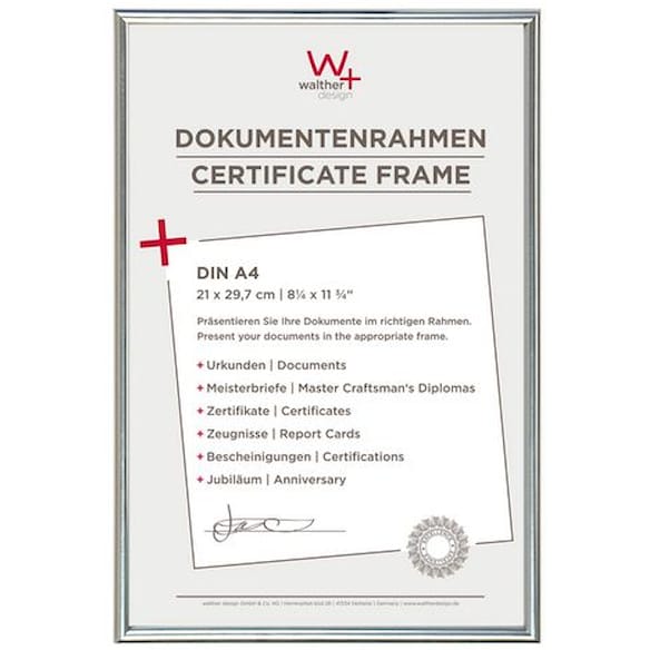 Heimlich® - Fotoram - A4 21 x 30 cm, aluminium metall, guld - examensbevis ram med plastplåtsskydd - väggmontering eller bordsvisning