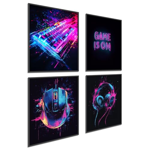 Donari Poster gaming set om 4 – gamingbild som dekoration för spelrum – väggdekoration för spelare, rum, LED-optik-set, A4-bilder med eller utan ram (motiv 3, 21 x 30 cm, utan ram)