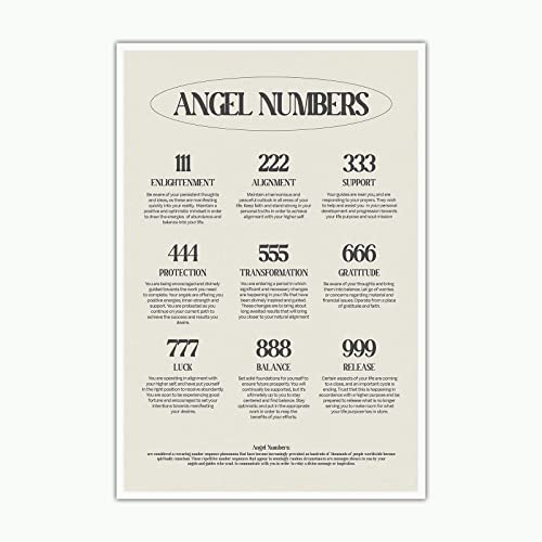 UAddMe Ängelnummer affisch för estetisk rumsdekor, andlighet lyckoinspirerande citat kanvas väggkonst, minimalistisk svart och vit dekor för sovrum vardagsrum vägg 30 x 45 cm utan ram