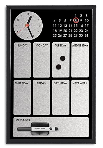 Bi-Office CG0177216 magnettavla med integrerad klocka och kontinuerlig kalender, MDF-ram, lackerat stål, 30 x 45 cm, svart
