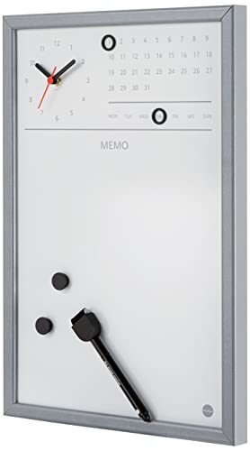Bi-Office CG0117152 magnettavla med integrerad klocka och kontinuerlig kalender, MDF-ram, lackerat stål, 30 x 45 cm, grå