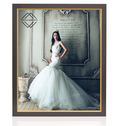 ramgalleri24 bildram 50 x 50 cm New Elegance ram svart guld trä akrylglas utan passepartout porträttram fotoram utbytbar ram för foto eller bilder MDF dekorativ ram utan bild