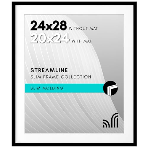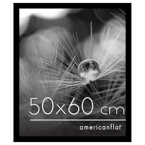 Americanflat 60 x 70 cm fotoram med polerat plexiglas, kan användas som 50 x 60 cm ram med passepartout eller 60 x 70 cm foton utan passepartout, fotoramar med smal ram för vägg, svart