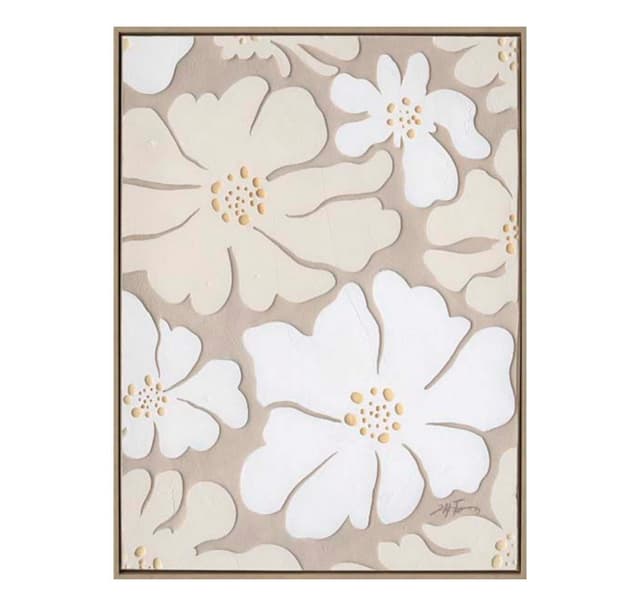 Målning med ram 60x80cm, beiga blommor