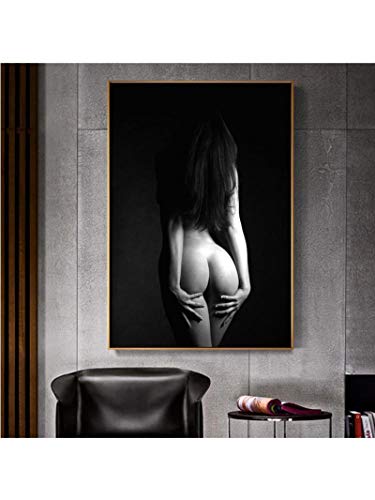 Nordisk abstrakt konst naken kvinna målning på duk moderna svartvita affischer och tryck väggkonst vardagsrum dekoration-60x80cm Ingen ram