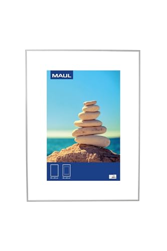 Maul Bildram Mauldesign 60 x 80 cm Av Aluminium, För Att Hänga i Liggande Och Stående Format, Ädel, Smal Utbytbar Ram Med Passepoutinlägg, Perfekt För Foton, Kollage Och Bilder, Silver