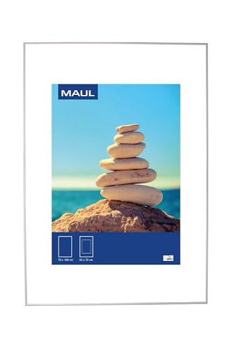 Maul Bildram Mauldesign 70 x 100 cm Av Aluminium, För Att Hänga i Liggande Och Stående Format, Ädel, Smal Utbytbar Ram Med Passepoutinlägg, Perfekt För Foton, Collage Och Bilder, Silver