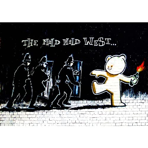 Homemania Tableau Inspiration av författare Banksy Bear - dekoration konst hem-tryck, digitalt, ram-flerfärgad, trä, bomull 100 X 70 X 3