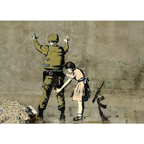 Homemania Tableau Inspiration av författare Banksy Polis and Girl-Art Home-Wall-tryck, digitalt, ram-flerfärgad, trä, bomull 100 X 70 X 3