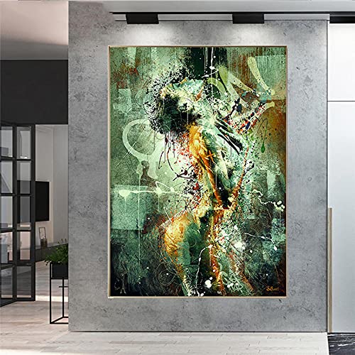 ZMFBHFBH Guld och rött par naken konst abstrakt affisch gatuvägg graffiti canvasmålning modern heminredning bild 80 x 120 cm (32 x 31 tum) med ram