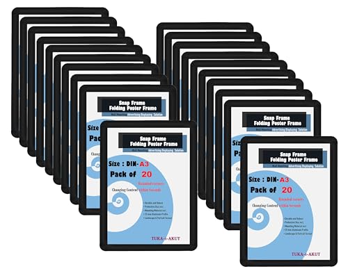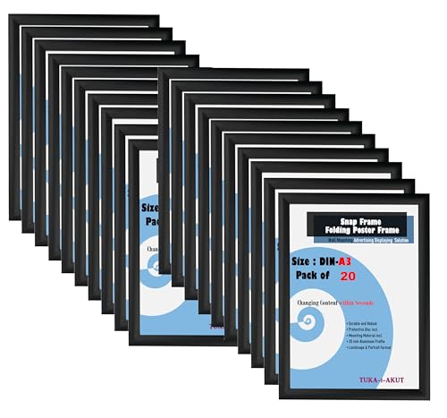 TUKA-i-AKUT 20X A3 Snäppram aluminium affischram rundade hörn, 25 mm aluminiumprofil, anslagsskylt tavla ram vikbar ram reklam visar affischhållare, svart färg TKD8421-A3-20X