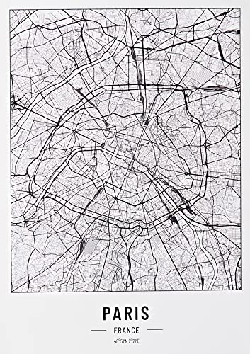 Affisch stadskarta A3 svart vit, papper 250 g. Bild för vardagsrum och sovrum, många stadsmönster, minimalistisk affisch, perfekt presentidé, utan ram, Paris