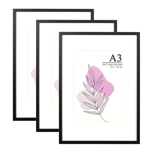 upsimples A3 bildram, 3-pack svart fotoram, A3-ram 29,7 x 42 cm, vägghängande fotoram