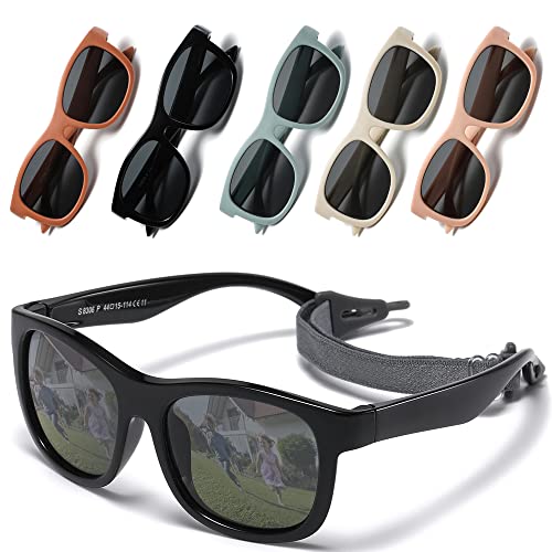 Musivon Bebe solglasögon 6 månader - 3 år, polariserade barn solglasögon flicka pojke flexibel ram för strandsemester fest, Svart, Pour bébés de 6 mois à 3 ans