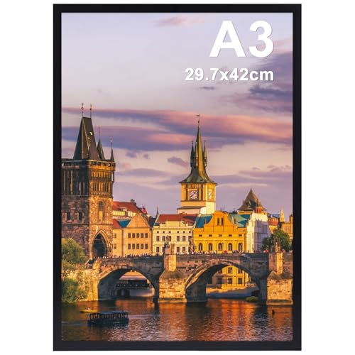 Baoee svart bildram A3, set med 3, fotoram med akrylglas, A3-ram, A3-affischram, A3-certifikatram, fristående och väggmonterbar