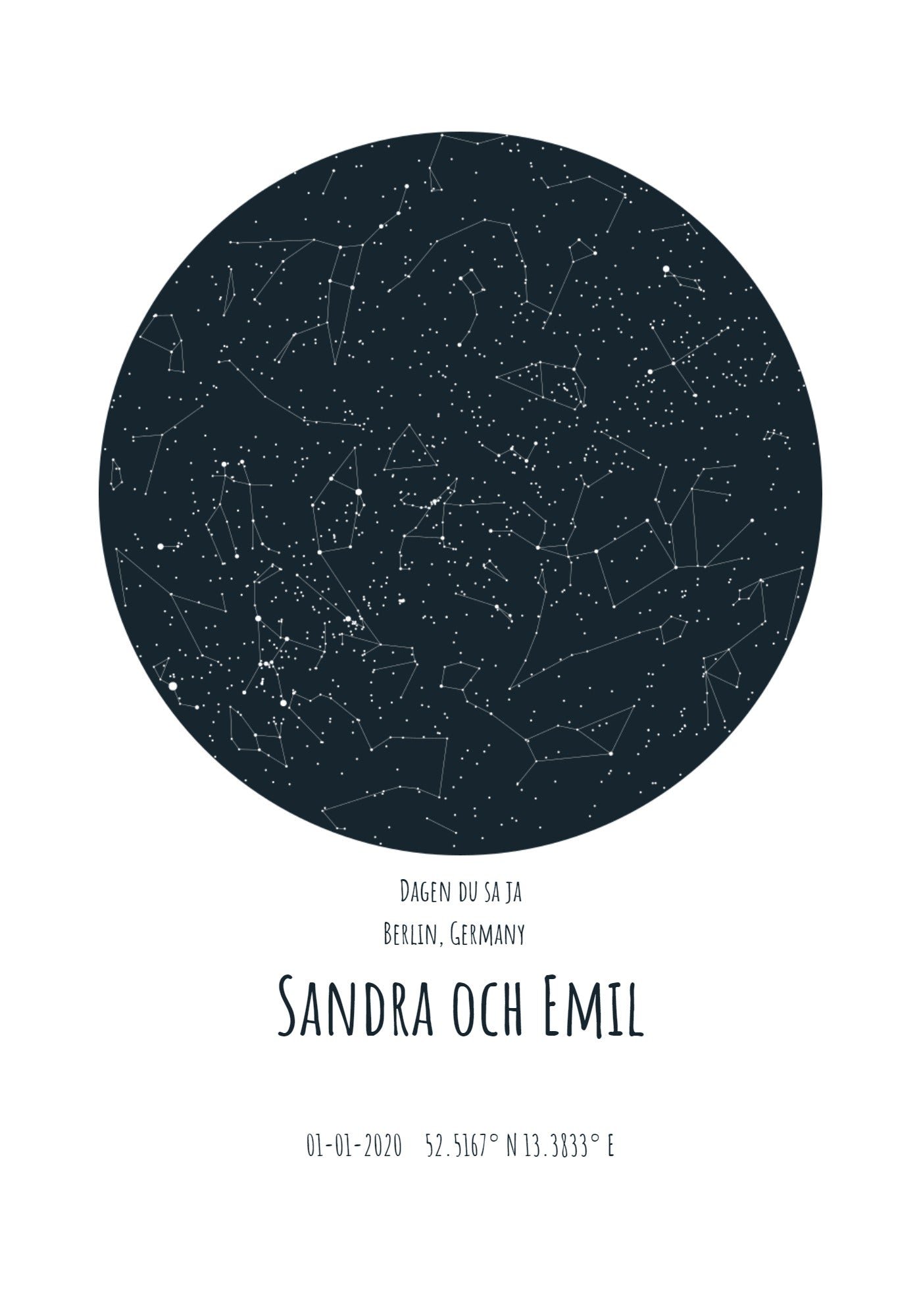 Stjärnkarta med ditt namn A3 inramad - svart ram