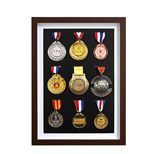 WANLIAN Medaljdisplay, djup ram i massivt trä, militärmedaljer, löparmedaljer, sportmedaljer, maratonmedaljer, medaljer, medaljer (450 mm x 325 mm)