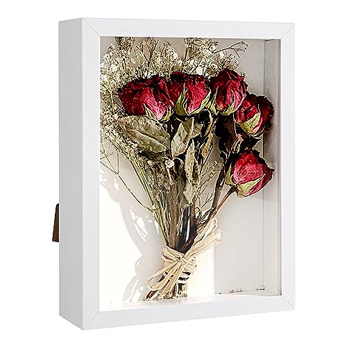 XTDMJ 3D Bildram 15 x 20 cm Djup Träobjekt Ram för 3D Fyllning Med Glasruta för Vägg eller Skrivbord - Gåvor för Familj (Vit Träkorn)