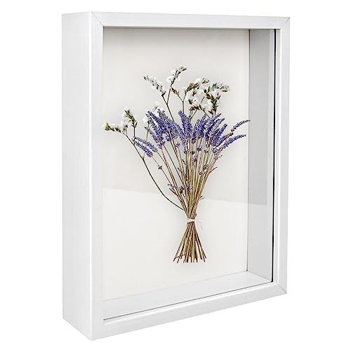 TJ.MOREE Blomskuggslåda visningsfodral 13 x 16 vintage stor ram med glasfönsterdörr – bondgård djup bildram för bröllopsbukett, minnesbukett, foton – vit rosa