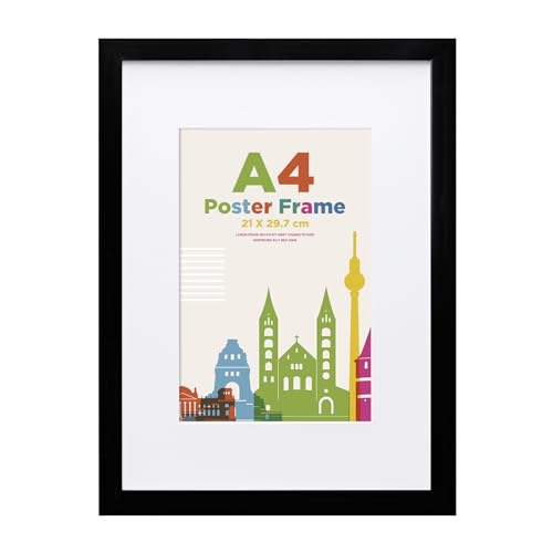 Egofine bildram A4, träram med akrylglas, MDF-ram, passepartout för foton A5, certifikatram för bord och väggmontering, 21 x 29,7 cm affischram för porträtt, svart