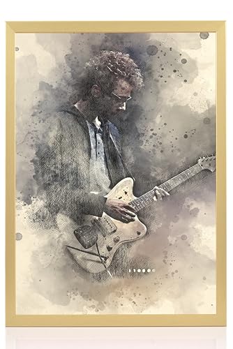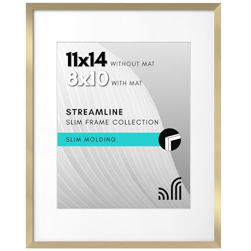 Americanflat 28 x 35 cm fotoram med splittersäkert glas, kan användas som 20 x 25 cm ram med passepartout eller 28 x 35 cm foton utan passepartout, fotoramar med smal ram för vägg, guld