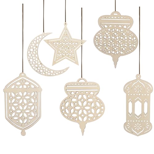 Trähänge, prydnad, 6 stycken, Ramadan Kareem-dekoration, halvmåne, stjärnor, stil, ljus, form, hänge, prydnad för Ramadan Eid Mubarak, dekorationer