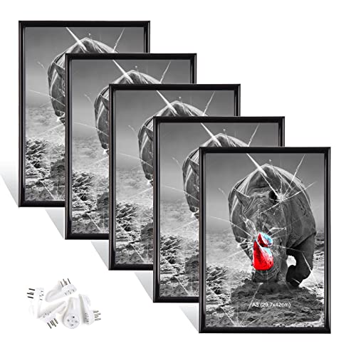 Dmyifan Set med 5 svarta fotoramar, bildramar DIN A3 (29,7 x 42 cm), plexiglas porträttram med sömlösa krokar, vardagsrum att ställa och hänga, dekorativa ramar för foton porträtt årsdag