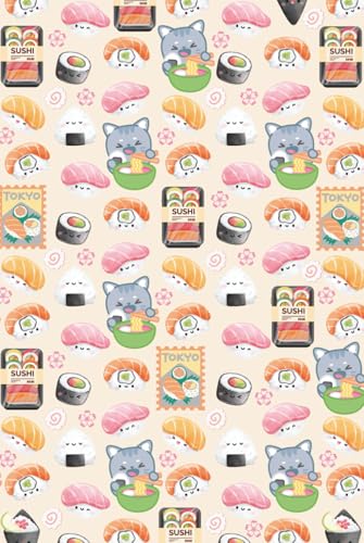 Sushi and Ramen Pattern Journal: Hardcover, 6 x 9 Inches, 180 Pages, Blank Lined Notebook, Matte Finish. Cute Kawaii Cats, Ramen Noodles, Sushi Lovers, Kawaii Characters, Japanese Food Journals