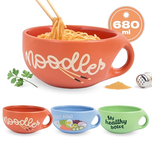 Fisura – Ramen skål "Noodles". Originell ramen skål. Japansk soppskål, 680 ml. Keramisk nudelskål. Perfekt för nudelsoppa, Pho, Udon och Soba. 19,5 cm x 8,5 cm.