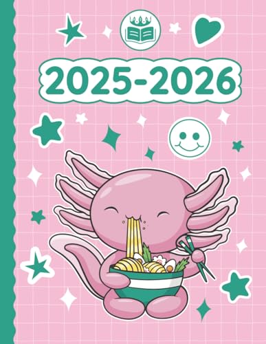 2025 2026 Planner Kawaii Axolotl Eating Ramen Noodles: Weekly and Monthly with Calendar (12 Month, Goals, Water & Sleep Tracker...) Birthday Funny ... for Japanese Anime Lovers in School & Work